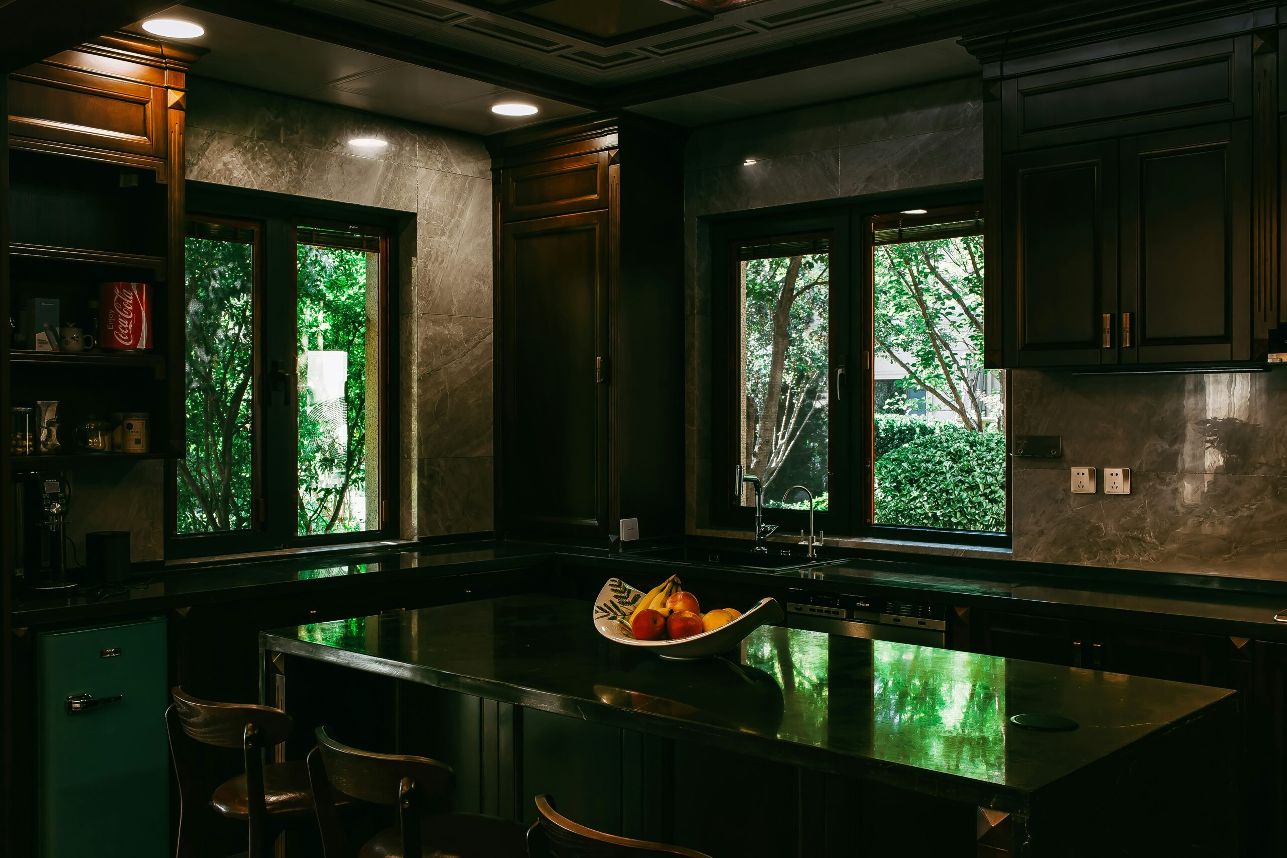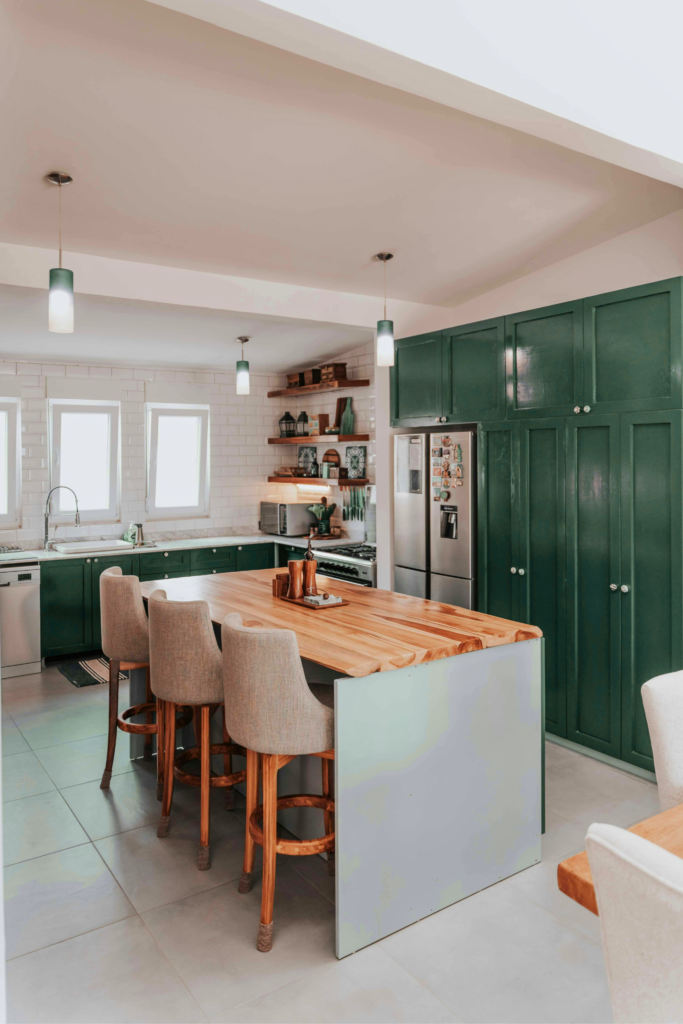 Uses two adjacent walls to create an efficient work triangle, often opening into another room.